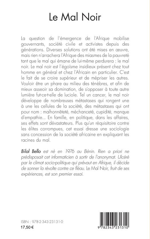 La question de l'émergence de l'Afrique mobilise gouvernants, société civile et activistes depuis des générations. Diverses solutions ont été mises en oeuvre, mais rien n'arrachera l'Afrique des miasmes de la pauvreté tant que le mal qui émane de lui-même perdurera: le mal noir. En famille, en politique, dans les affaires, ses effets sont dévastateurs. Plus qu'un réquisitoire contre les élites corrompues, cet essai dresse une sociologie sans concession de la société africaine en expliquant les racines du mal.