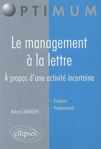 Pour que le manager agisse en professionnel, il est nécessaire qu’il maîtrise les techniques de la conduite de l’action collective mais qu’il soit aussi porteur d’une culture qui l’incite à la réflexion, à l’analyse des situations rencontrées et à la compréhension des processus de la communication interpersonnelle et de la communication institutionnelle. Cela résulte d’apprentissages. Le manager est à la fois savant et acteur Le management à la lettre invite à une promenade stimulante dans les fondamentaux de cette science de l’action et de la décision qu’est aujourd’hui le management. Il s’adresse à la fois aux responsables, cadres et décideurs, aux formateurs et consultants ainsi qu’aux étudiants appelés, à plus ou moins long terme à faire leurs premières armes en management.