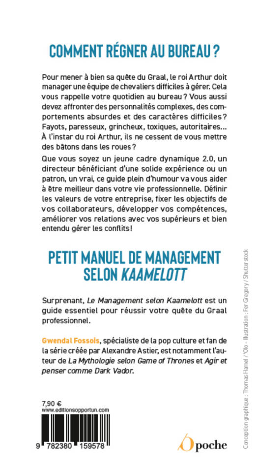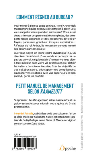Pour mener à bien sa quête du Graal, le roi Arthur doit manager une équipe de chevaliers difficiles à gérer ! Cela vous rappelle votre quotidien au bureau ?!... Vous aussi devez affronter des personnalités complexes, des comportements absurdes et des caractères difficiles ? Fayots, paresseux, grincheux, toxiques, autoritaires… À l’instar du roi Arthur, ils ne cessent de vous mettre des bâtons dans les roues ? Que vous soyez un jeune cadre dynamique 2.0, un directeur bénéficiant d’une solide expérience ou un patron, un vrai, ce guide plein d'humour va vous aider à être meilleur dans votre vie professionnelle. Définir les valeurs de votre entreprise, fixer les objectifs de vos collaborateurs, développer vos compétences, améliorer vos relations avec vos supérieurs et bien entendu gérer les conflits !