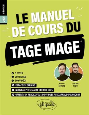 Cet ouvrage de référence écrit par Joachim PINTO (HEC Paris et score record de 507/600) et Arnaud SÉVIGNÉ (HEC Paris) vous propose une préparation complète au TAGE MAGE (de A à Z).