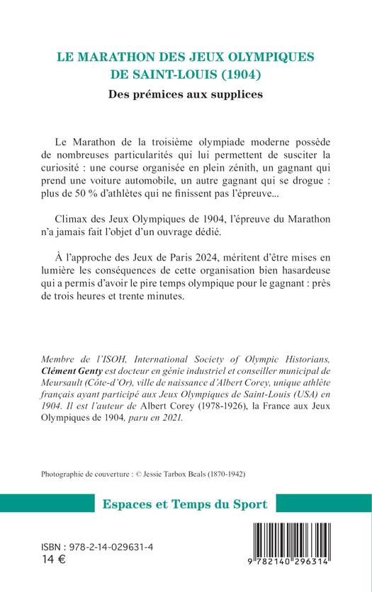 Le Marathon de la troisime olympiade moderne possde de nombreuses particularit s qui lui permettent de susciter la curiosit: une course organis e en plein z nith, un gagnant qui prend une voiture automobile, un autre gagnant qui se drogue: plus de 50 % dÕathltes qui ne finissent pas l preuve... Climax des Jeux olympiques de 1904, l preuve du Marathon nÕa jamais fait lÕobjet dÕun ouvrage d di . Ë lÕapproche des Jeux de Paris 2024, m ritent d tre mises en lumire les cons quences de cette organisation bien hasardeuse qui a permis dÕavoir le pire temps olympique pour le gagnant: prs de trois heures et trente minutes.