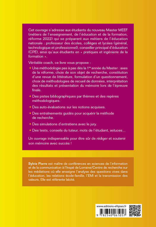 • Une méthodologie étape par étape (y compris sur la constitution d’un travail de recherche),