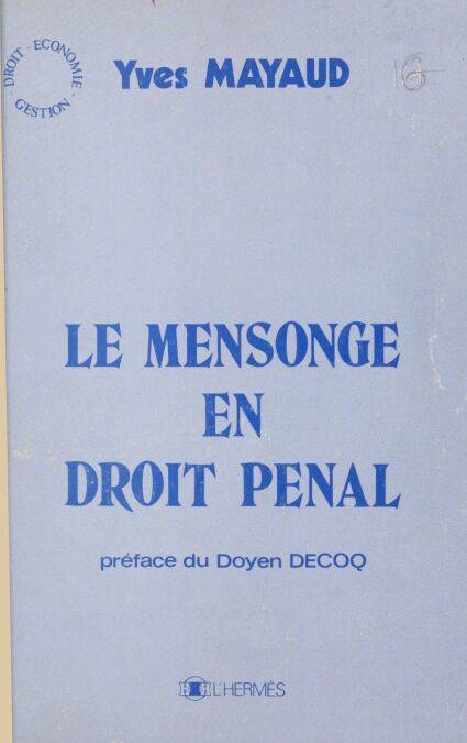 Recoupant de nombreuses infractions contrefaçon des sceaux de l’État, fausse monnaie, faux en écriture, faux témoignage, faux serment, diffamation, dénonciation calomnieuse, escroquerie, publicité mensongère, fraudes et tromperies en matière de produits ou de services…, l’étude du mensonge en droit pénal se prête volontiers à l’ébauche d’une théorie générale. C’est cette théorie que contient le présent ouvrage, théorie qui non seulement emprunte aux solutions positives du droit pénal français, mais tend aussi à en fixer l’originalité par rapport et aux données traditionnelles de la morale et à celles plus récentes de la psychologie sociale. L’ouvrage, plus spécialement destiné aux pénalistes, est appelé en réalité à une audience beaucoup plus large. L’ampleur de la documentation, la clarté de l’exposition, la nature des thèmes traités font de ce livre un instrument de travail précieux du clan scientifique, auquel se référera utilement tout le public concerné (entreprises, consommateurs, magistrature, barreau, notariat…).