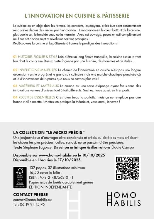 La cuisine est un objet dont les formes, les contours, les moyens, et les buts sont constamment renouvelés depuis des siècles par l'innovation⦠L'innovation est le cÅur battant de la cuisine, plus que le sel, le fond de veau ou la marmite ! Avec cet ouvrage, posez un Åil complètement neuf sur cet ancien sujet et révolutionnez vos pratiques ! Redécouvrez la cuisine et la pâtisserie à travers le prodiges des innovations !