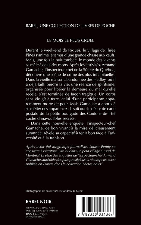 Durant le week-end de Pâques, Three Pines s'anime le temps d'une grande chasse aux oeufs. Mais, une fois la nuit tombée, le monde des vivants se mêle à celui des morts. Après les festivités, l'inspecteur-chef Armand Gamache découvre une scène de crime des plus inhabituelles. Une femme gît à terre, apparemment morte de peur durant une scène de spiritisme. Mais Gamache a appris à se méfier des apparences, il sait que le décor de carte postale de la petite bourgade cache d'inavouables secrets... Le troisième volet des enquêtes du délicieux inspecteur Gamache.