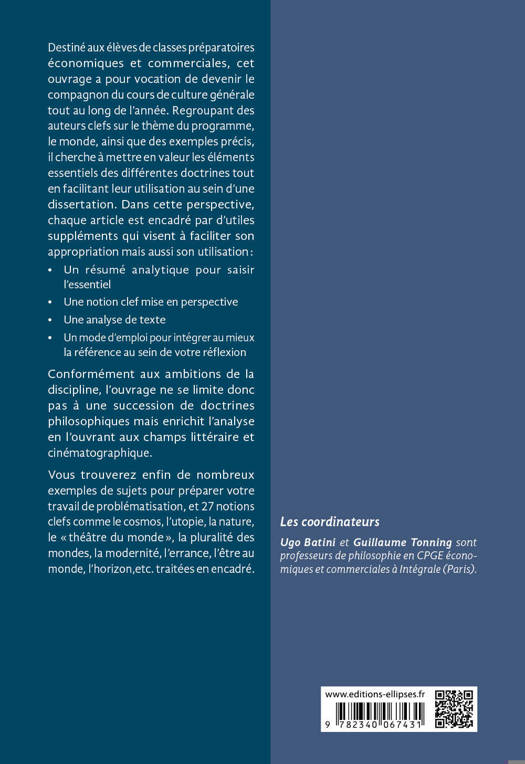 Destiné aux élèves de classes préparatoires économiques et commerciales, cet ouvrage a pour vocation de devenir le compagnon du cours de culture générale tout au long de l’année. Regroupant des auteurs clefs sur le thème du programme ainsi que des exemples précis, il cherche à mettre en valeur les éléments essentiels des différentes doctrines tout en facilitant leur utilisation au sein d’une dissertation.