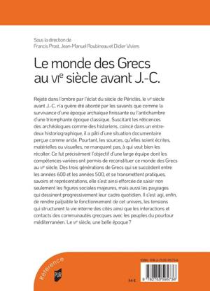 Rejeté dans l’ombre par l’éclat du siècle de Périclès, le VIe siècle avant J.-C. n’a guère été abordé par les savants que comme la survivance d’une époque archaïque finissante ou l’antichambre d’une triomphante époque classique. Suscitant les réticences des archéologues comme des historiens, coincé dans un entredeux historiographique, il a pâti d’une situation documentaire perçue comme aride. Pourtant, les sources, qu’elles soient écrites, matérielles ou visuelles, ne manquent pas, à qui veut bien les récolter. Ce fut précisément l’objectif d’une large équipe dont les compétences variées ont permis de reconstituer ce monde des Grecs au VIe siècle. Des trois générations de Grecs qui se succèdent entre les années 600 et les années 500, et se transmettent pratiques, savoirs et représentations, elle s’est ainsi efforcée de saisir non seulement les figures sociales majeures, mais aussi les paysages qui dessinent progressivement leur cadre quotidien. Il s’est agi, enfin, de rendre palpable le fonctionnement de cet univers, les tensions qui structurent la vie interne des cités ainsi que les interactions et contacts des communautés grecques avec les peuples du pourtour méditerranéen. Le VIe siècle, une belle époque ?