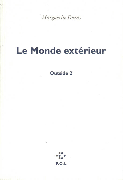 Comme Outside, Le Monde extérieur réunit des articles de journaux, des préfaces, des lettres, des textes, les uns publiés entre 1962 et 1993, les autres demeurés inédits. Certains sont nés de l'événement politique ou social, d'une indignation (l'affaire Greenpeace, la campagne électorale puis la victoire de la droite, la montée des intégrismes et du néonazisme, le raid américain en Lybie), certains d'un film aimé, de peintures longuement regardées, d'une rencontre, d'un soir de solitude. Marguerite Duras les a écrits pour le "dehors, pour sortir au-dehors" et, fragments échappés à son oeuvre, ils en forment une part complémentaire.