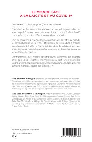 Ce livre est un plaidoyer pour (re)penser la laïcité. Loin de souscrire à quelque logique uniformisée de l’être-au-monde, la compréhension et le vécu différenciés de l’être-dans-le-monde contribueraient à offrir à l’humanité des abris de solutions face aux crises sanitaires mondiales actuelles et à venir, en tirant les leçons de la pandémie du covid-19. Contrairement aux scénarii apocalyptiques claironnés par diverses officines idéologico-politico-pharmaceutiques, c’est l’une des grandes leçons à tirer de la résilience de l’Afrique subsaharienne, face à la crise sanitaire mondiale, causée par le covid-19.