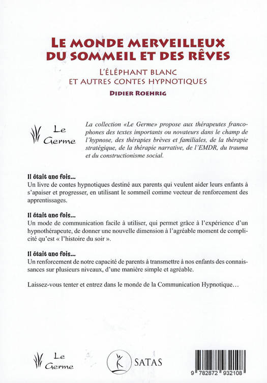 Il était une fois... Un livre de contes hypnotiques destiné aux parents qui veulent aider leurs enfants à s'apaiser et progresser, en utilisant le sommeil comme vecteur de renforcement des apprentissages. Il était une fois... Un mode de communication facile à utiliser, qui permet grâce à l'expérience d'un hypnothérapeute, de donner une nouvelle dimension à l'agréable moment de complicité qu'est "l'histoire du soir". Il était une fois... Un renforcement de notre capacité de parents à transmettre à nos enfants des connaissances sur plusieurs niveaux, d'une manière simple et agréable. Laissez-vous tenter et entrez dans le monde de la Communication Hypnotique...