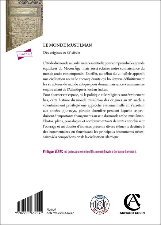 L’étude du monde musulman est essentielle pour comprendre les grands équilibres du Moyen Âge, mais aussi éclairer notre connaissance du monde arabe contemporain. En effet, au début du VIIe siècle apparaît une civilisation nouvelle et conquérante qui bouleverse définitivement les structures du monde antique pour donner naissance à un immense empire allant de l’Atlantique à l’océan Indien. Pour aborder cet espace, où le politique et le religieux sont étroitement liés, cette histoire du monde musulman des origines au XIe siècle a volontairement privilégié une approche événementielle en s’arrêtant aux années 950-1050, période charnière pendant laquelle se produisent d’importants changements au sein du monde arabo-musulman. Photos, plans, généalogies et nombreux extraits de textes enrichissent l’ouvrage et un dossier d’annexes présente divers éléments destinés à des commentaires et fournissent les principaux instruments nécessaires à la compréhension de la civilisation islamique.