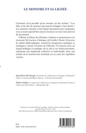 Comment est-il possible qu'un monstre ait des enfants ? Les filles et les fils de monstres peuvent-ils échapper à leur destin ? A Rome, le thème des filiations violentes et monstrueuses est récurrent. De Lucrèce à Sénèque, de Catulle à Tacite, il traverse les débats philosophiques, nourrit les imaginaires poétiques et mythiques, oriente l'écriture de l'histoire.