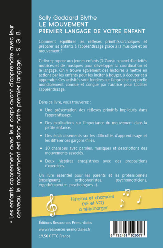Ce livre propose aux jeunes enfants de 3 à 7 ans un panel d'activités motrices et de musiques pour développer la coordination et le langage. On y trouve également des histoires à mettre en action par les enfants pour les inciter à bouger, à écouter et à apprendre. Ces activités sont fondées sur l'approche corporelle mondialement connue et conçue par l'autrice pour faciliter l'apprentissage.