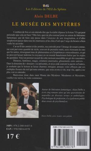 Combien de fois a-t-on entendu dire que la réalité dépasse la fiction ? Et qui peut prétendre que cela est faux ? Dès lors, quoi de plus normal pour un auteur de littérature fantastique que de faire une pause dans l'exercice de son imagination, et d'aller simplement puiser dans tous les murmures et les clins d'oeil que l'ange du bizarre a bien voulu lui accorder.Car au fil des années et des amitiés, ma curiosité pour l'étrange devenant connue, me sont parvenus quantité de récits, souvent de première main, aussi étonnants les uns que les autres, témoignant tous de phénomènes et d'expériences extraordinaires, et qui ne peuvent laisser indemne la croyance en un monde banalement balisé par les règles du quotidien. Voici un premier recueil de cette moisson assemblée au gré des rencontres.Démons, fantômes, magie, créatures anormales, glissements entre univers... Dans la douzaine de dossiers ici présentés, et où je cède souvent la parole à d'autres, je souhaite que le lecteur se laisse charmer, intriguer, amuser, voire effrayer, par ces multiples fissures du réel qui nous entoure, que nous avons si vite, trop vite, appris à ne plus voir ni entendre.Bienvenue donc dans mon Musée des Mystères. Mesdames et Messieurs, veuillez me suivre, la visite commence.Auteur de littérature fantastique, Alain Delbe a écrit cinq romans ainsi qu'une quarantaine de nouvelles en diverses revues et anthologies. Psychologue de profession, il a également publié deux essais de psychanalyse.Alain Delbe avec Louis, son golem.