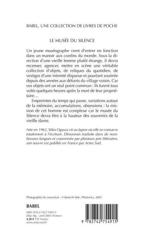 Un jeune muséographe vient d'entrer en fonction dans un manoir aux confins du monde. Sous la direction d'une vieille femme plutôt étrange, il devra recenser, agencer, mettre en scène une véritable collection d'objets, de reliques du quotidien, de vestiges d'une intimité disparue et pourtant soutirée depuis des années aux défunts du village voisin. Car ces objets ont un seul point commun : ils furent tous volés quelques heures après la mort de leur propriétaire... Empreintes du temps qui passe, variations autour de la mémoire, accumulations, obsessions : la mission de cet homme est complexe car le musée du Silence devra être à la hauteur des souvenirs de la vieille dame.