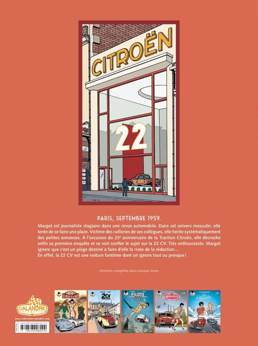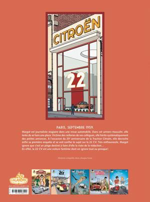 Paris, mars 1959, Margot est depuis deux mois journaliste dans une revue automobile. Dans cet univers essentiellement masculin, elle doit subir les railleries et les petits articles de seconde zone. Un jour à l'occasion des 25 ans de la traction, elle se voit confier un reportage sur la 22 CV. Mais la 22 CV est une voiture fantôme que personne n'a jamais vue.