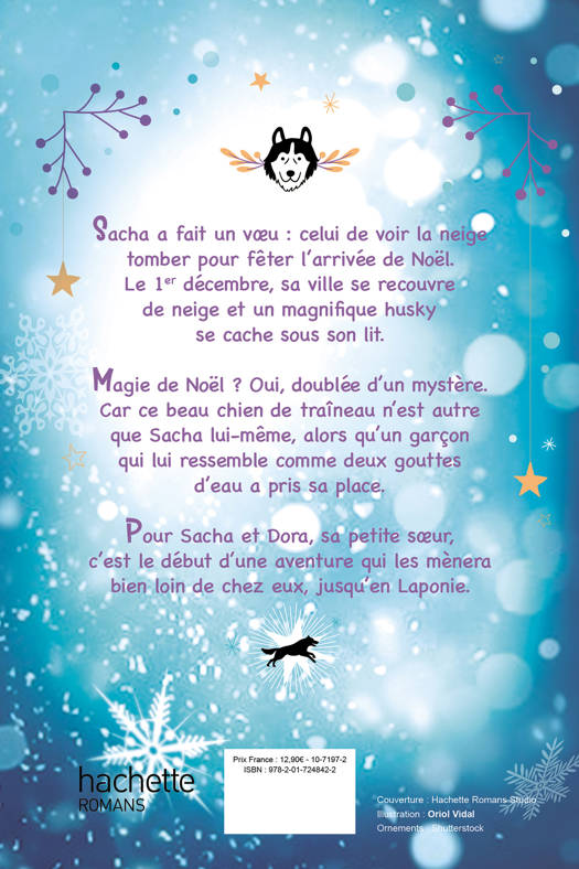 Sacha a fait un vœu  : celui de voir la neige tomber pour fêter l’arrivée de Noël. Le 1er décembre, sa ville se recouvre de neige et un magnifique husky se cache sous son lit. Magie de Noël  ? Oui, doublée d’un mystère. Car ce beau chien de traîneau n’est autre que Sacha lui-même, alors qu’un garçon qui lui ressemble comme deux gouttes d’eau a pris sa place. Pour Sacha et Dora, sa petite sœur, c’est le début d’une aventure qui les mènera bien loin de chez eux, jusqu’en Laponie.