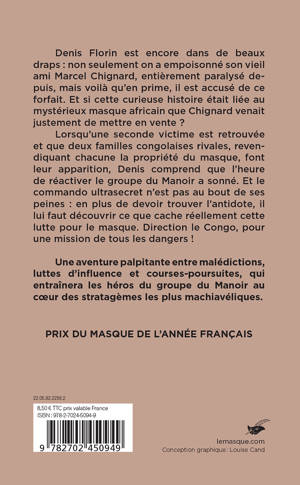 Lorsqu’une seconde victime est retrouvée et que deux familles congolaises rivales, revendiquant chacune la propriété du masque, font leur apparition, Denis comprend que l’heure de réactiver le groupe du Manoir a sonné. Et le commando ultrasecret n’est pas au bout de ses peines : en plus de devoir trouver l’antidote, il lui faut découvrir ce que cache réellement cette lutte pour le masque. Direction le Congo, pour une mission de tous les dangers !
