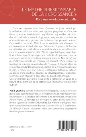 Dans ce nouveau livre, Yvon Quiniou, toujours habité par la réflexion politique dans une optique progressiste, s'empare d'une question terriblement inquiétante aujourd'hui et pour demain celui de la crise écologique provoquée par la croissance non maîtrisée de la production technique qui pourrait amener l'humanité à sa mort. Mais il ne se contente pas d'accuser la consommation individuelle qui l'alimente, il pointe l'influence considérable du productivisme capitaliste dans le travail humain, comme le consumérisme et le rôle de la publicité qui y contribue. Il va même jusqu'à envisager une volonté de puissance ou de croissance infinie que certains penseurs (comme Nietzsche) ont pu mettre au compte de l'homme et pouvant même abîmer sa fonction de sujet responsable de l'histoire. Il conclut alors en refusant cependant toute critique absolue de la croissance, refusant la dérive naturaliste d'un nouvel écologisme (Descola, Latour) au profit d'une maîtrise éclairée du développement scientifico-technique non régi par le seul souci du profit économique. Un complément personnel nous invite à retrouver un goût de la nature et du bonheur de la côtoyer que l'humanité semble avoir oublié !