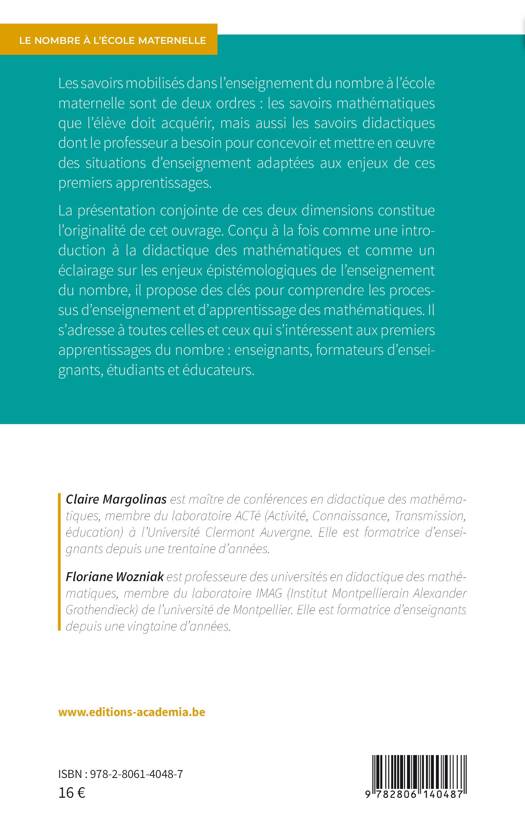 La présentation conjointe de ces deux dimensions constitue l'originalité de cet ouvrage. Conçu à la fois comme une introduction à la didactique des mathématiques et comme un éclairage sur les enjeux épistémologiques de l'enseignement du nombre, il propose des clés pour comprendre les processus d'enseignement et d'apprentissage des mathématiques. Il s'adresse à toutes celles et ceux qui s'intéressent aux premiers apprentissages du nombre: enseignants, formateurs d'enseignants, étudiants et éducateurs.