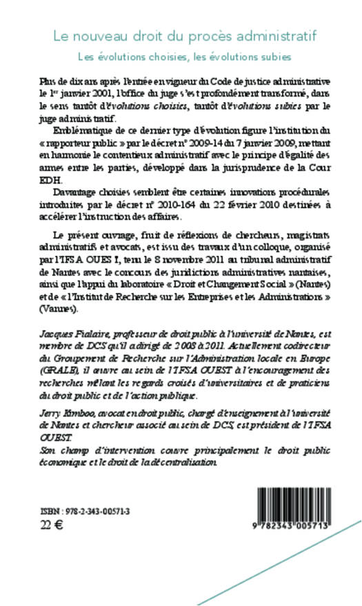 Plus de 10 ans après l'entrée en vigueur du Code de justice administrative, l'office du juge s'est profondément transformé. Parmi les évolutions subies par le juge administratif figure l'institution du "rapporteur public", mettant en harmonie le contentieux administratif avec le principe d'égalité des armes entre les parties, développé dans la jurisprudence de la Cour EDH. Certaines innovations procédurales destinées à accélérer l'instruction des affaires semblent, quant à elles, davantage choisies.