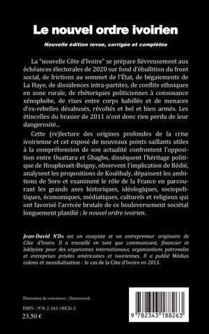 La "nouvelle Côte d'Ivoire" se prépare fiévreusement aux échéances électorales de 2020 sur fond d'ébullition du front social, de frictions au sommet de l'État, de bégaiements de La Haye, de dissidences intra-partites, de menaces d'ex-rebelles révoltés et bel et bien armés... Les étincelles du brasier de 2011 n'ont donc rien perdu de leur dangerosité. Cette (re)lecture des origines profondes de la crise ivoirienne et cet exposé de nouveaux points saillants utiles à la compréhension de son actualité confrontent l'opposition entre Ouattara et Gbagbo et dissèquent l'héritage politique de Houphouët-Boigny. Cet ouvrage analyse les propositions de Koulibaly, dépasse les ambitions de Soro et examine le rôle de la France en parcourant les grands axes historiques, idéologiques, sociopolitiques, économiques, médiatiques, culturels et religieux qui ont favorisé l'arrivée brutale de ce bouleversement sociétal longuement planifié : le nouvel ordre ivoirien.
