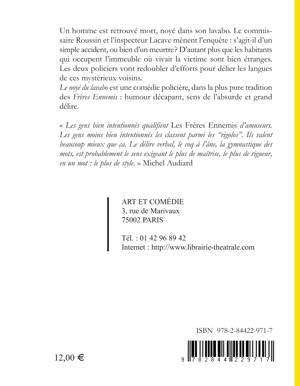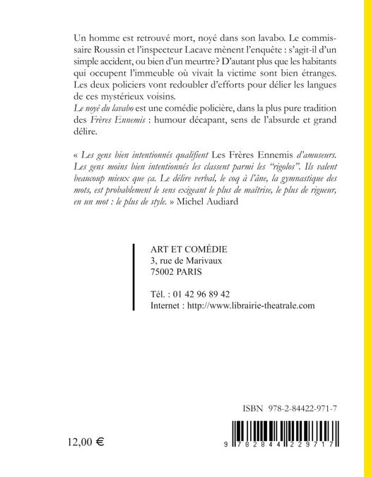 Un homme est retrouvé mort, noyé dans son lavabo. Le commissaire Roussin et l'inspecteur Lacave mènent l'enquête: s'agit-il d'un simple accident, ou bien d'un meurtre? D'autant plus que les habitants qui occupent l'immeuble où vivait la victime sont bien étranges. Les deux policiers vont redoubler d'efforts pour délier les langues de ces mystérieux voisins. Le noyé du lavabo est une comédie policière, dans la plus pure tradition des Frères Ennemis: humour décapant, sens de l'absurde et grand délire.