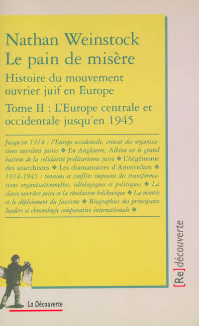 De 1880 à 1940, le mouvement ouvrier juif fut une force généralement décisive dans la vie et l'évolution des communautés juives européennes. Nathan Weinstock, en une vaste fresque, en a restitué la diversité des organisations, partis, syndicats et journaux. Sa connaissance du yiddish lui a permis d'exhumer des textes qui sont autant de facettes d'une foisonnante activité ouvrière.
