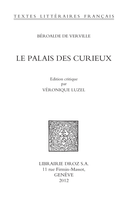Cette édition critique du Palais des Curieux a donc pour but d’en rendre la lecture plus aisée et plus enrichissante : intégralement retranscrit, ce beau livre devient désormais accessible à tous grâce aux notes qui l’éclairent et en soulignent la fascinante complexité.