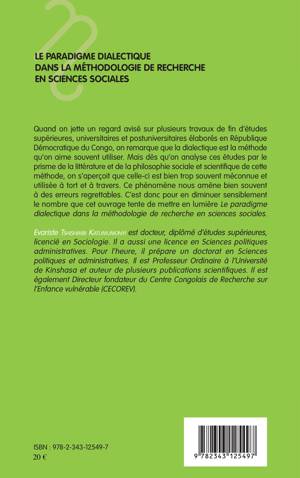La dialectique est une méthode très souvent utilisée dans les travaux universitaires en RDC. Mais dès qu'on approche ces études à la lumière de la littérature et de la philosophie sociale et scientifique de cette méthode, on s'aperçoit que celle-ci est bien trop souvent méconnue et utilisée à tort et à travers. Les auteurs de ce manuel apportent leurs connaissances relatives à cette méthode, notamment sa naissance, son évolution et ses postulats de base.