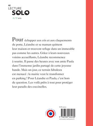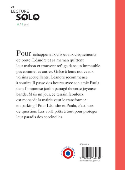 Pour échapper aux cris et aux claquements de porte, Léandre et sa maman quittent leur maison et trouvent refuge dans un immeuble pas comme les autres. Grâce à leurs nouveaux voisins accueillants, Léandre recommence à sourire. Il passe des heures avec son amie Paula dans l'immense jardin partagé de cette joyeuse bande. Mais un jour, ce terrain fabuleux est menacé : la mairie veut le transformer en parking ! Pour Léandre et Paula, c'est hors de question. Les voilà prêts à tout pour protéger leur paradis des coccinelles.