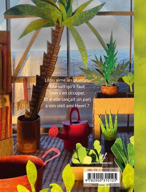 Henri est jardinier et s'y connaît en plantes. «Tout ce qui compte, c'est qu'elles aient du soleil et de l'eauâ». Pour la petite Lilou, les plantes ont surtout besoin d'amourâ! C'est pourquoi Lilou propose un pari à son ami Henri : pendant quatre semaines, chacun va s'âoccuper d'une petite plante, chacun à sa manière. La méthode de Lilou ? Elle raconte à sa plante des histoires, elle lui joue de la musique, et la petite plante a même le droit de se glisser dans le rôle d'un grand palmier. Chez Henri, l'ambiance est moins joyeuse. Il s'impatiente, gronde la plante entre deux arrosages, tire sur la tige... On court à la catastrophe ! Vous avez deviné le résultat ? Alors que la petite plante de Lilou s'est élevée vers les cieux, Henri doit bien avouer que le soleil et l'eau ne suffisent pas et que les plantes aussi ont besoin de patience et d'attention pour bien grandir. Finalement, c'est un pari gagnant pour tous les deux. Vous allez voir !