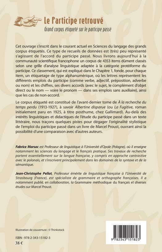 Cet ouvrage s'inscrit dans le courant actuel en Sciences du langage des grands corpus étiquetés. Ce type de recueils de données est peu représenté s'agissant de l'accord du participe passé. Cet ouvrage livre aujourd'hui à la communauté scientifique francophone un corpus de 4353 items dûment classés selon une grille d'analyse linguistique adaptée à la catégorie protéiforme du participe.