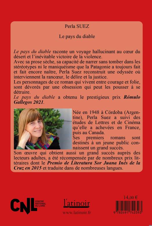Le pays du diable raconte un voyage hallucinant au coeur du désert et l'invétable triomphe de la violence. Sa prose sèche, sa capacité de narrer sans tomber dans les séréotypes ni les maniquéismes que la Patagonie a souvent fait naître, Perla Suez reconstruit une odyssée de rancoeur, de délire et de justice. Les personnages de ce roman vivent entre le courage et la folie, dévorés par une obsession qui va peut-être jusqu'à les consummer.