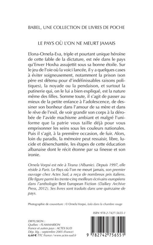 Elona-Ornela-Eva, triple et pourtant unique héroïne de cette fable de la dictature, est née dans le pays qu'Enver Hoxha assujettit sous sa bonne étoile. Sur le jeu de l'oie où la voici lancée, il y a quelques cases à éviter soigneusement, notamment la prison (son père est détenu pour d'indéfinissables raisons politiques), la noyade ou la pendaison, et surtout la putinerie qui, on le lui a bien expliqué, est la nature même des filles. Somme toute, il s'agit de passer au mieux de la petite enfance à l'adolescence, de dessiner son bonheur dans l'amour de sa mère et dans le rêve de l'exil, de voir grandir son corps à la dérobée de l'avide machisme ambiant et malgré l'uniforme que la patrie vous taille déjà pour vous emprisonner les seins sous les couleurs nationales. Puis il s'agit, à la première occasion, de fuir. Alors, loin du paradis, la mémoire peut ressaisir, libre, lucide et désenchantée, les étapes de cette éducation albanaise dont le récit étonne par sa finesse et son ironie.