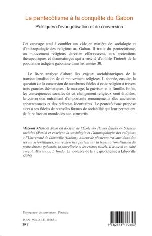 Cet ouvrage tend à combler un vide en matière de sociologie et d'anthropologie des religions au Gabon. Il traite du pentecôtisme, un mouvement religieux chrétien effervescent, aux prétentions thérapeutiques et thaumaturges qui a suscité d'emblée l'intérêt de la population indigène gabonaise dans les années 30.
