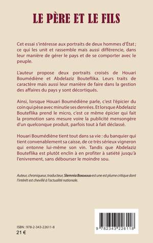 Cet essai s’intéresse aux portraits de deux hommes d’État, Houari Boumédiène et Abdelaziz Bouteflika ; ce qui les unit et rassemble mais aussi différencie, dans leur manière de gérer le pays et de se comporter avec le peuple. Il analyse leurs traits de caractère mais aussi leur manière de faire dans la gestion des affaires du pays.