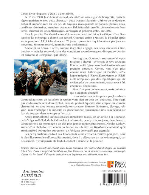 Le 1er mai 1990, Jean-Louis Gouraud quitte la région parisienne avec deux chevaux, deux trotteurs français. Il emporte avec lui très peu de bagages, mais quantité de papiers : permis, visas, certificats vétérinaires, sanitaires, douaniers. Il doit franchir, en effet, de nombreuses frontières : traverser les deux Allemagne, la Pologne et pénétrer, enfin, en URSS. Il est le premier Occidental autorisé à entrer à cheval en Union Soviétique, grâce à l'accord de Mikhaïl Gorbatchev. Jean-Louis Gouraud arrive à Moscou le 14 juillet après avoir parcouru 3333 kilomètres en 75 jours. Les nombreuses notes prises par Jean-Louis Gouraud au cours de ses allers et retours vont bien au-delà de l'anecdote. Il ne s'agit pas ici du simple récit d'un exploit équestre, mais du portrait équestre d'un empire où,