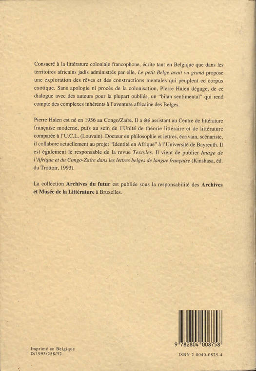 Réflexion actuelle sur un passé qui a durablement imprégné les consciences. Des études sur Henri Cornélus, Geo Duncan, Ariane François, Daniel Gillès, Joseph-Marie Jadot, Omer Marchal, Grégoire Pessaret, Ivan Reisdorff, Albert Russo, Pierre de Vaucleroy.