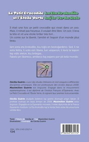 ll était une fois un petit crocodile qui vivait dans un zoo. Mais, il n'était pas heureux, il voulait être libre. Un soir, il leva la tête et vit une étoile briller très fort... Un conte sur la liberté, l'amitié et l'espoir d'un monde plus beau. Iam estis eta krokodilo, kiu logxis en bestogxardeno. Sed, li ne estis felicxa, li volis esti libera. Iun vesperon, li levis la kapon kaj vidis stelon, kiu brilegas... Fabelo pri libereco, amikeco kaj espero por pli bela mondo.
