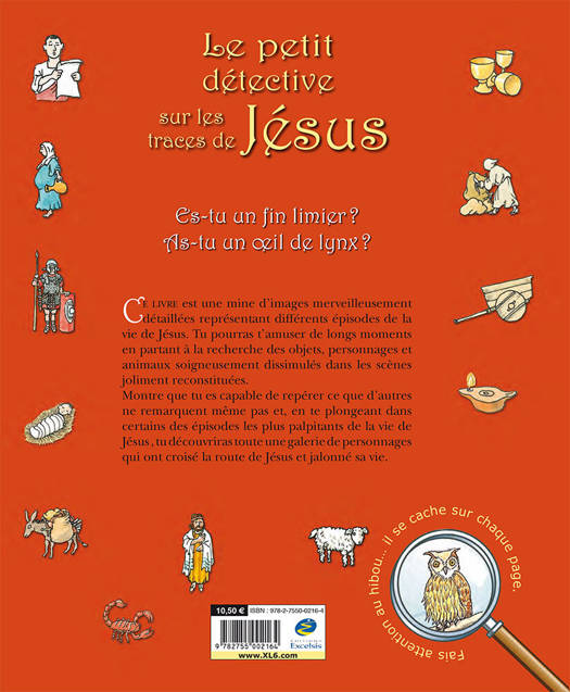 Es-tu un fin limier ? As-tu un œil de lynx ? Ce livre est une mine d’images merveilleusement détaillées représentant différents épisodes de la vie de Jésus. Tu pourras t’amuser de longs moments en partant à la recherche des objets, personnages et animaux soigneusement dissimulés dans les scènes joliment reconstituées. Montre que tu es capable de repérer ce que d’autres ne remarquent même pas et, en te plongeant dans certains des épisodes les plus palpitants de la vie de Jésus, tu découvriras toute une galerie de personnages qui ont croisé sa route et jalonné sa vie.