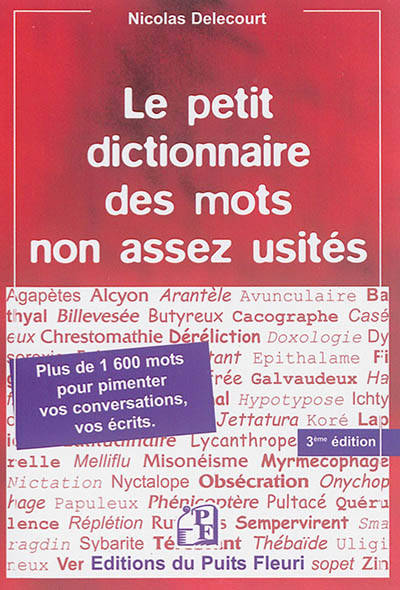 Ce petit dictionnaire recense et propose 1 600 mots qui, sans être exclus de la langue française (ils figurent dans les dictionnaires officiels récents et usuels de notre XXIème siècle) n'en sont pas moins quelque peu - et injustement - reclus, alors qu'ils peuvent subtilement épicer, voire pimenter, vos propos et écrits.