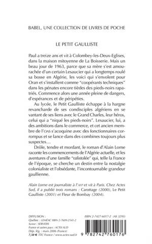 Paul a treize ans et vit à Colombey-les-Deux-Eglises, dans la maison mitoyenne de La Boisserie. Mais un beau jour de 1963, parce que sa mère s'est amourachée d'un certain Lesaucier qui a longtemps roulé sa bosse en Algérie, les voici qui s'envolent pour Oran et s'installent comme "coopérants techniques" dans les pénates encore tièdes des pieds-noirs rapatriés. Commence alors une année pleine de dangers, d'espérances et de péripéties. Au lycée, le Petit Gaulliste échappe à la hargne revancharde de ses condisciples algériens en se vantant de ses liens avec le Grand Charles, leur héros, celui qui a "nique les pieds-noirs". Lesaucier, lui, a des ambitions dans le commerce, et cet ancien membre de I'OAS s'acoquine avec des fonctionnaires corrompus et se lance dans des combines toujours plus suspectes... Drôle, tendre et mordant, le roman d'Alain Lorne raconte les commencements de l'Algérie actuelle, et les aventures d'une famille "rafistolée" qui, telle la France de l'époque, se cherche un destin entre la nostalgie colonialiste et l'obsédante, l'incontournable grandeur gaullienne.