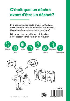 Un livre qui explique aux enfants d'où viennent huit matières premières essentielles et où vont les déchets avec lesquels ils sont composés lorsqu'on les jette. Pour une prise de conscience des futurs éco-citoyens.