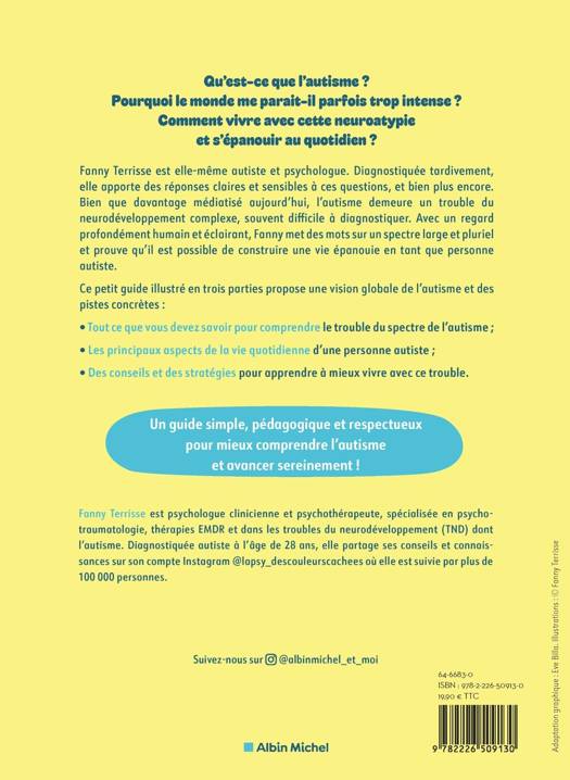 Fanny Terrisse est elle-même autiste et psychologue. Diagnostiquée tardivement, elle apporte des réponses claires et sensibles à ces questions, et bien plus encore. Bien que davantage médiatisé aujourd'hui, l'autisme demeure un trouble du neurodéveloppement complexe, souvent difficile à diagnostiquer. Avec un regard profondément humain et éclairant, Fanny met des mots sur un spectre large et pluriel et prouve qu'il est possible de construire une vie épanouie en tant que personne autiste.