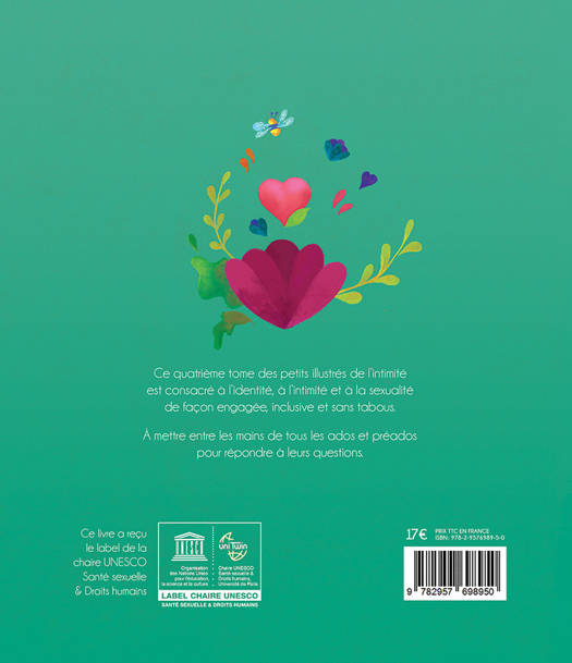 Après trois tomes dédiés à l’intimité et à la conception destinés aux enfants dès 4-5 ans, ce quatrième tome s’adresse enfin aux préados et aux ados !Cette période est en effet une étape cruciale dans le rapport au corps, dans la construction de l’image de soi, dans les relations aux autres.Ce livre n’est pas un guide des pratiques ou un kamasutra, mais un documentaire qui cherche à nourrir la compréhension des enfants de la santé sexuelle plutôt que d’entretenir le flou sur ce sujet sensible. Il pose les bases des relations intimes afin de donner des informations objectives et des connaissances scientifiques avec des mots justes, adaptés à leur âge.A l’intérieur : une première partie avec des rappels anatomiques, sur l’identité et les relations aux autres, et une seconde sur la sexualité et la contraception. Ainsi qu’un lexique et une page listant les contacts d’associations.- Le quatrième tome d’une série vendue à 108.000 exemplaires !- Enfin un tome pour les préados et les ados qui se questionnent sur leur intimité, leur identité et leurs relations aux autres !- Un documentaire engagé, inclusif, sans tabous, sans détours et sans fausse pudeur !- Tout comme les trois premiers tomes, le tome 4 a reçu le label de la Chaire santé sexuelle et droits humains de l’UNESCO.