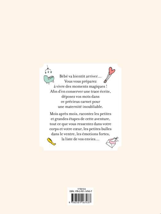Mois après mois, racontez les petites et grandes étapes de cette aventure, tout ce que vous ressentez dans votre corps et votre cœur, les petites bulles dans le ventre, les émotions fortes, la liste de vos envies…