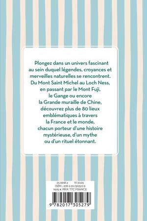 Plongez dans un univers fascinant au sein duquel légendes, croyances et merveilles naturelles se rencontrent. Du Mont Saint Michel au Loch Ness, en passant par le Mont Fuji, le Gange ou encore la Grande muraille de Chine, découvrez plus de 80 lieux emblématiques à travers la France et le monde, chacun porteur d’une histoire mystérieuse, d’un mythe ou d’un rituel étonnant.