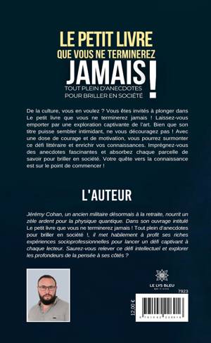 De la culture, vous en voulez ? Vous êtes invités à plonger dans Le petit livre que vous ne terminerez jamais ! Laissez-vous emporter par une exploration captivante de l'art. Bien que son titre puisse sembler intimidant, ne vous découragez pas ! Avec une dose de courage et de motivation, vous pourrez surmonter ce défi littéraire et enrichir vos connaissances. Imprégnez-vous des anecdotes fascinantes et absorbez chaque parcelle de savoir pour briller en société. Votre quête vers la connaissance est sur le point de commencer !