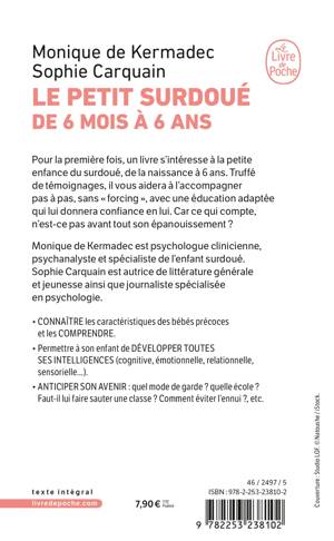 Monique de Kermadec est psychologue clinicienne, psychanalyste et spécialiste de l’enfant surdoué. Sophie Carquain est auteure de littérature jeunesse et journaliste spécialisée en psychologie.